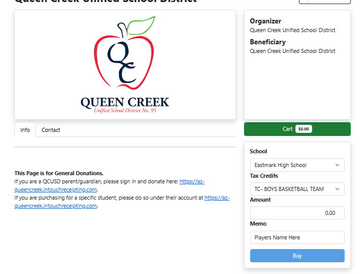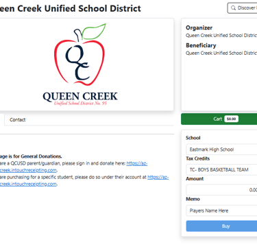 Step 3: Choose “TC- BOYS BASKETBALL TEAM” from tax credit drop down.